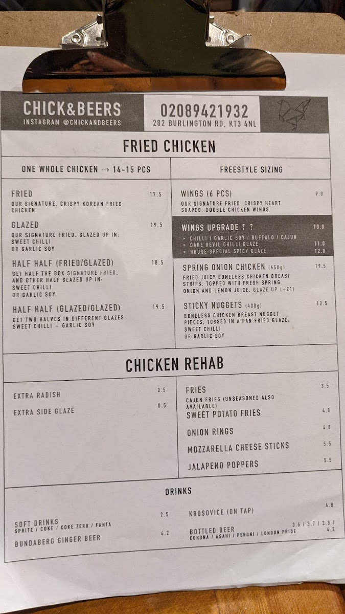 Welcome to Chick and Beers on Burlington Road, your go-to spot for delectable Korean fried chicken! Nestled in New Malden, this eatery is a culinary delight that has garnered rave reviews from food enthusiasts. The menu features an enticing selection of chicken, with standout flavors like the Chilli spicy glaze and garlic soy that have kept patrons coming back for more.